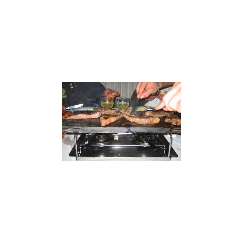 Entrecot a Piedra, acompanado de papa frita y verduras sautee.